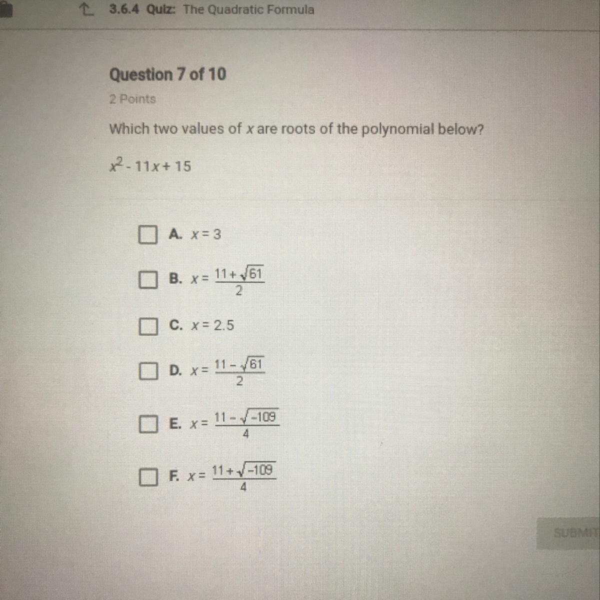 Step-by-step explanation: We are given to select the values of x that are the roots of the following polynomial :