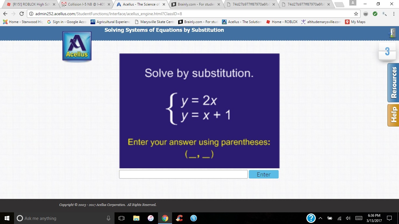 y = x + 1; Solve for "x and y" ; Write the solution as an "ordered pair". ___________________________________________________