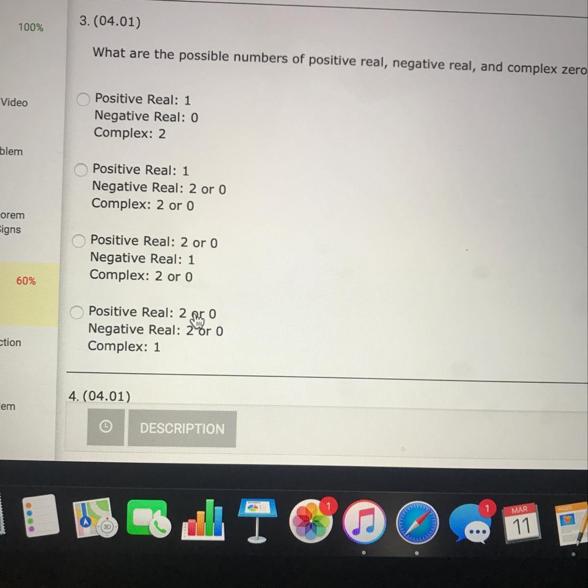what are the possible numbers of positive real, negative real and complex zeros of f(x)=4x^3+x^2+10x-14