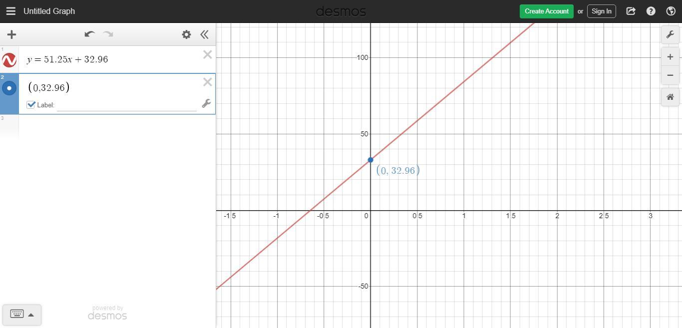 y = 51.25x + 32.96 where x is the time spent making repairs and y is the total amount charged on a customer after a repair.