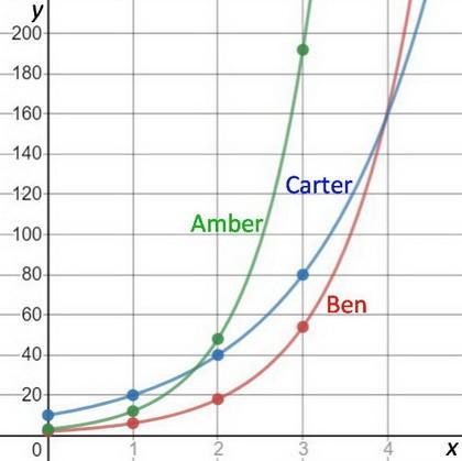 Amber started with only three friends, but they made four shares. By Day 3, she had 192 shared compared to 82 for Carter and only 54 for Ben