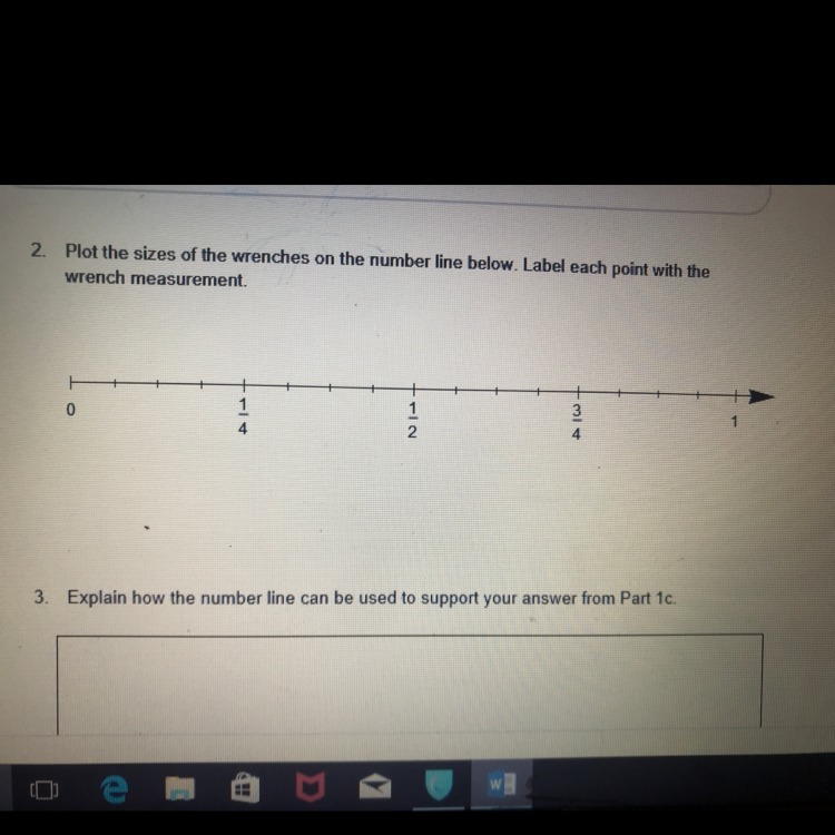 2.plot the sizes of the wrenches on the number line below (in the picture) label each point with a wrench measurement