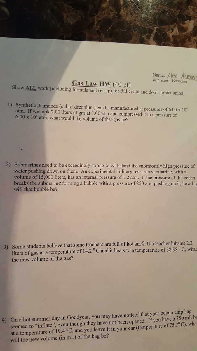 Given parameters: