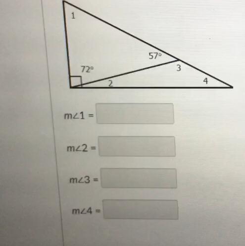 Therefore, the correct answers are m<1 = 51 degrees, m<2 = 18 degrees, m<3 = 123 degrees, and m<4 = 39 degrees.