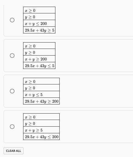 There are two types of seats at the concerts, which are priced at $29.50 and $43.00. Paige would like to spend no more than $200.