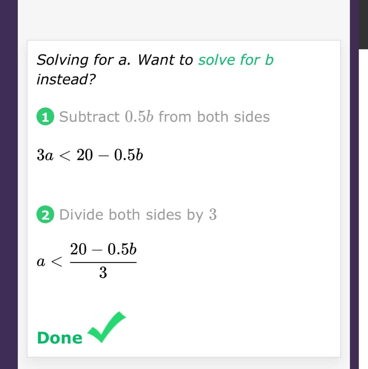 What does 3a + 0.5b < 20