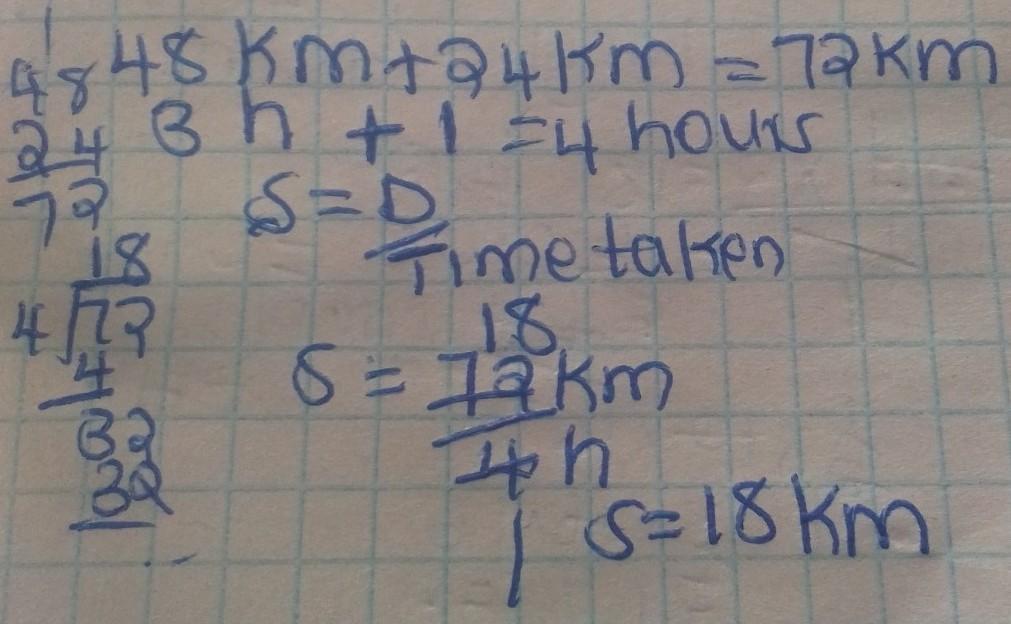 speed=distance\time taken that's the formula I've used.I hope you'll understand it.