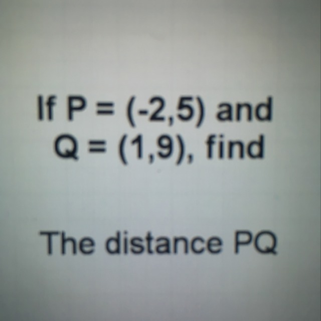 Distance = sqrt (x2-x1)^2 + (y2-y1)^2