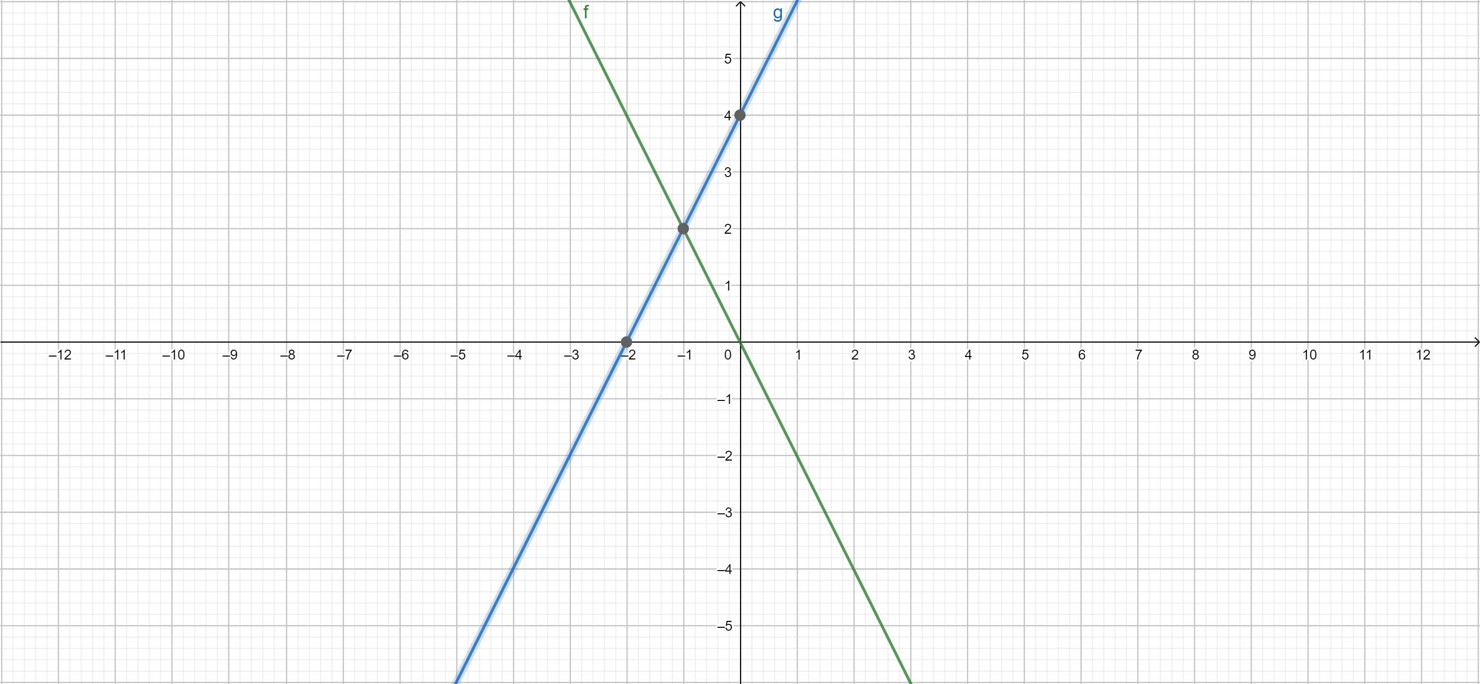 You can see it in the image below. (blue is y = 2*x + 4, and green is y = -2*x)