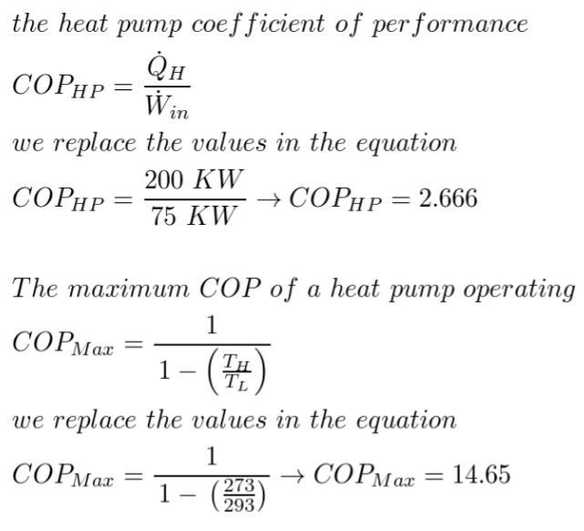 An inventor claims to have developed a heat pump that produces 200 kW of heating for a 293 K heated zone whilst only using 75 kW