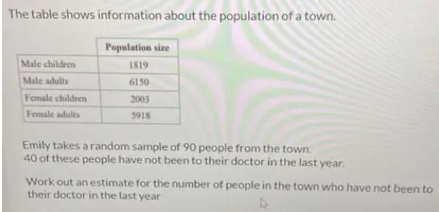 Thus, the estimate for the number of people in the town who have not been to their doctor in the last year is 7062.