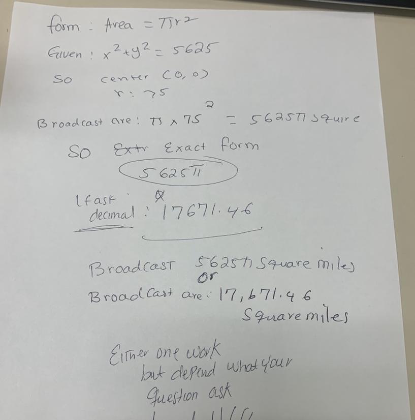 The answer is : 5625 pi square miles