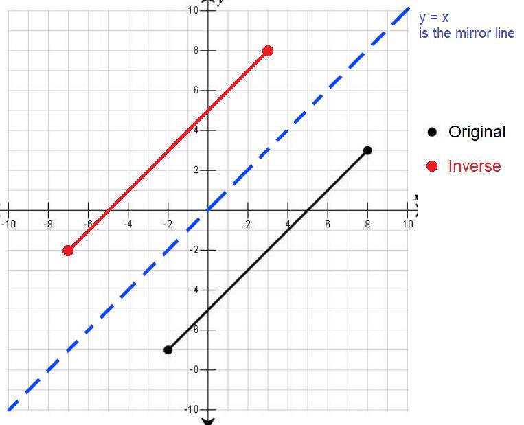 The inverse will have us swap x and y. The point (x,y) becomes (y,x)