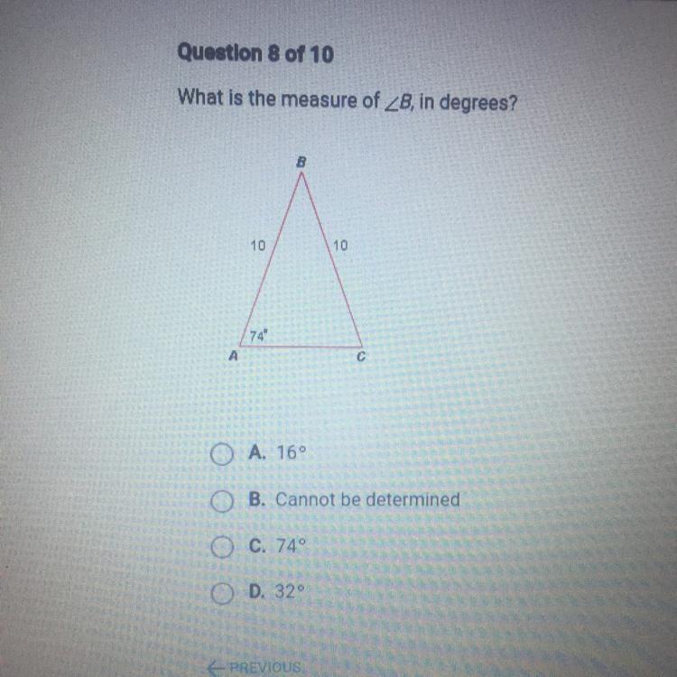 74 + 74 + angle B = 180