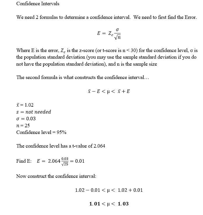 to construct a 95% confidence interval for the mean weight (µ) of all cereal boxes of Granola Crunch. Assume that the weight of cereal boxes is normally distributed with a population standard deviation (σ) of 0.03 pounds.