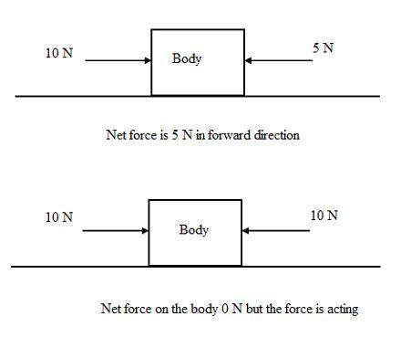 If two equal forces act on a body in the opposite directions, then the net force acting on the body will be zero. But in this situation we cannot say that there is no force acting on the body because there are two forces acting on the body whose resultant force is zero.