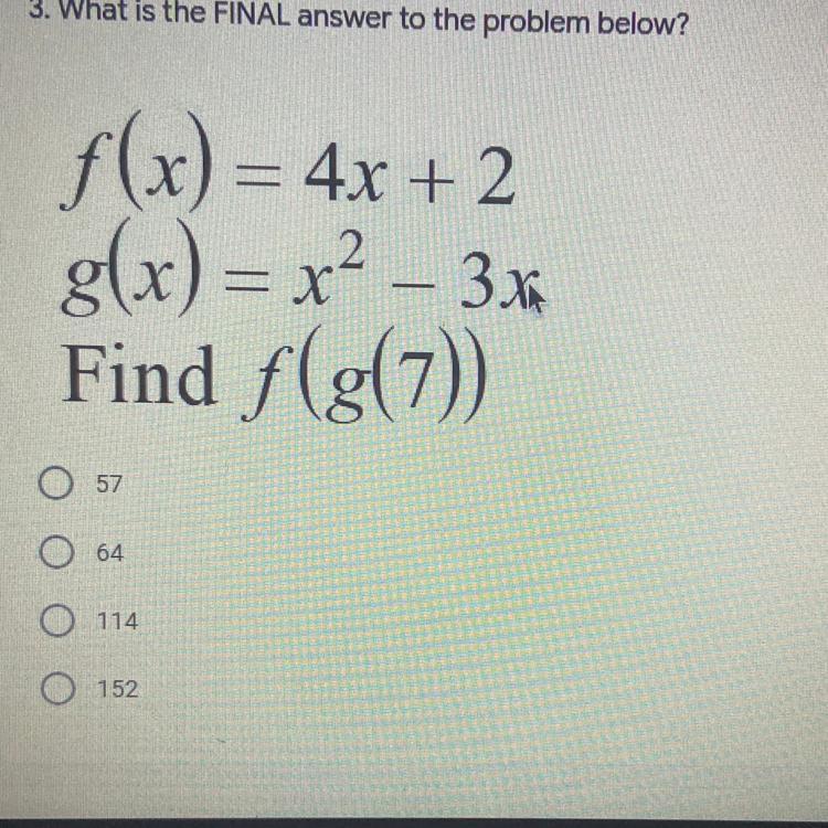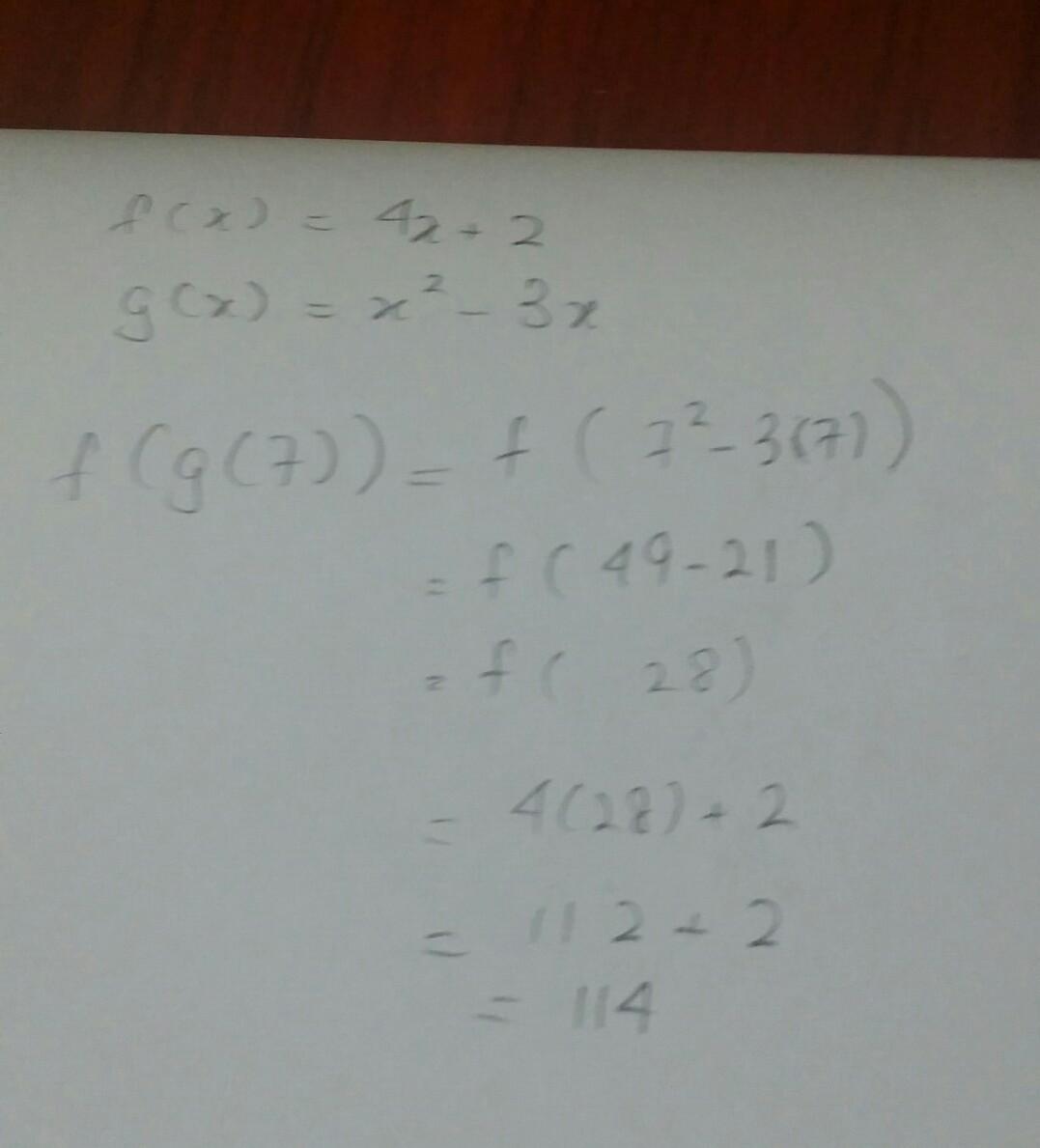 g(7)= 7^2 - 3(7)= 49 - 21 = 28