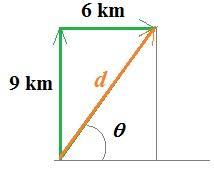 d=\sqrt{9^2+6^2} \\d=\sqrt{81+36} \\d=\sqrt{117} \\d=10.82 \,\,km