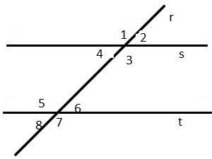 ∵ Line r intersects lines s and t