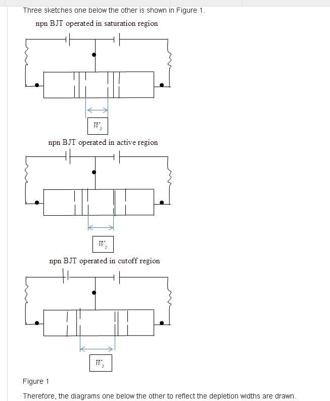 aw the three sketches one below the other to (qualitatively) reflect the depletion widths for these biases, and the relative emitter, base, and collector doping.
