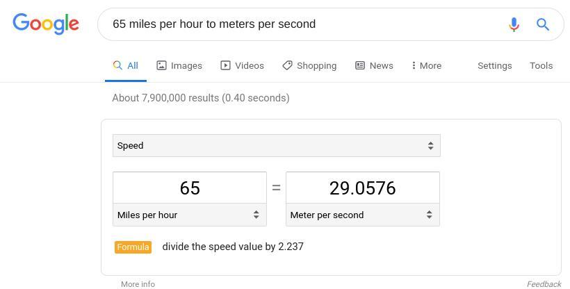 Let x represent 65 miles in meters