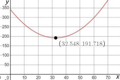 ƒ(x) = 0.1421x² -9.25x + 342.24