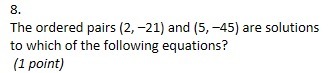 Check the coordinates of the given points in each of the given possible answer functions (2, –21) and (5, –45), until you find the function satisfied by these two points.