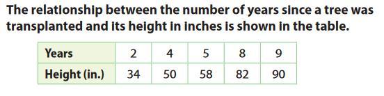 - <u><em>The height of the tree is 18 inches plus 8 inches for each year since the tree was transplanted.</em></u>