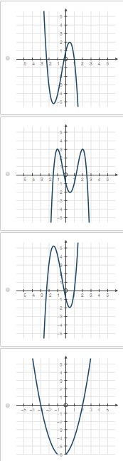 Upon looking at our given choices we can see that graph represented by option A and C intersects x axis at 3 places. The graph represented by option B intersects x-axis at 4 places. So option A, B and C are not correct choices.