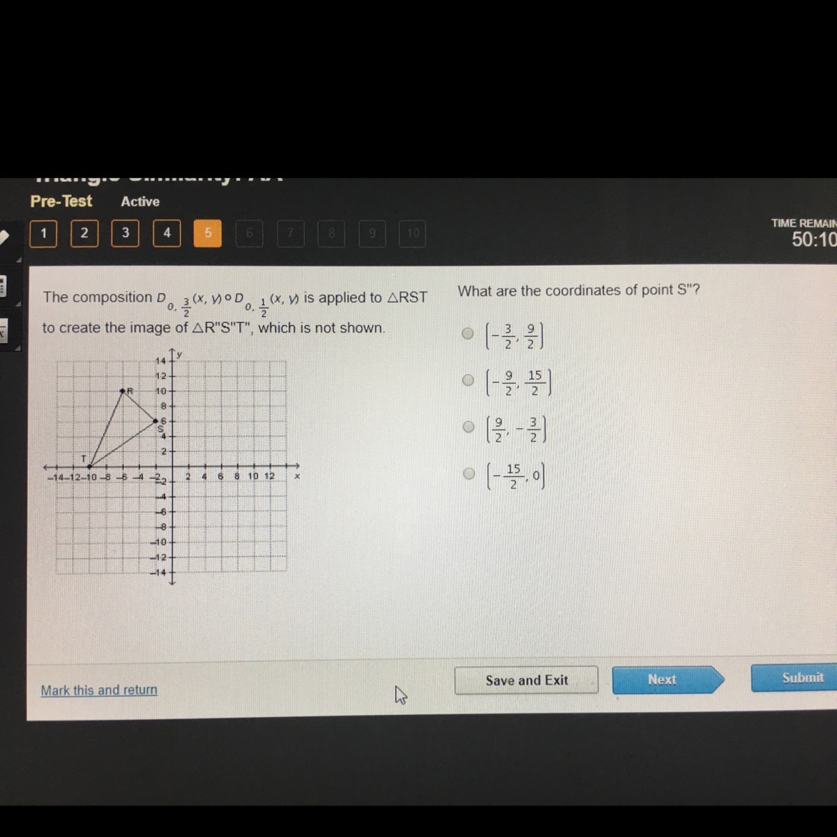 R(-6,10), T(-10,0) and S(-2,6).