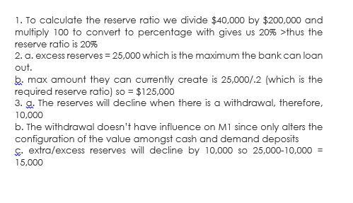 From the given problem statement we need to calculate the reserve ratio