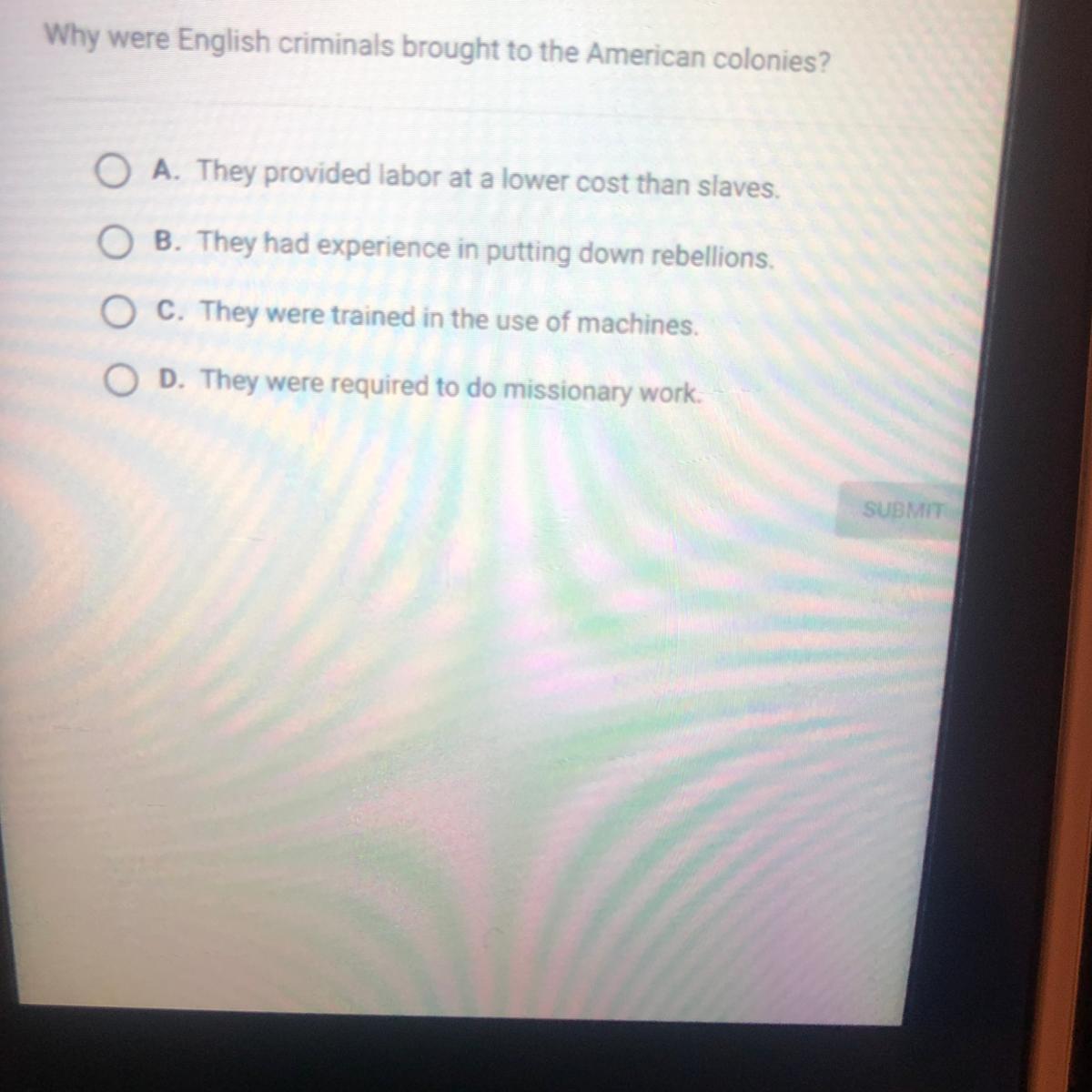 I think its D, they would be able to ship livestock via railroad