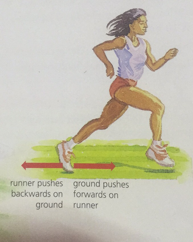 Since the plane is frictionless, the only force acting on the block along the motion of the block is its weight.
