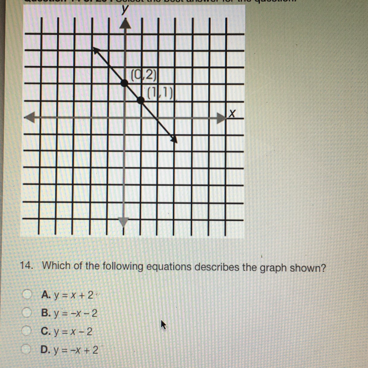 Therefore, the equation of the line with slope m = -1 and passing through the point (0, 2) is given by