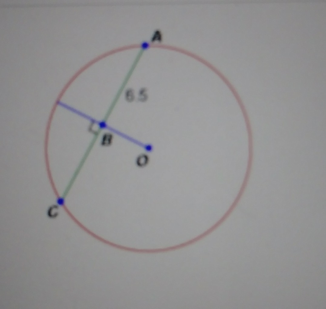 if the blue radius below is perpendicular to the green chord and the segment AB is 6.5 units long what is the length of the chord? the correct answer is: