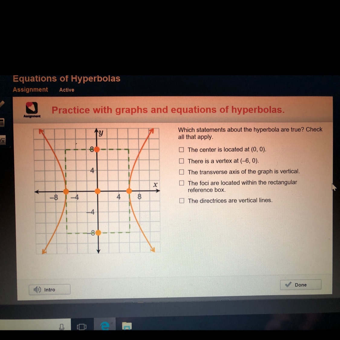 4. The foci are located within the rectangular reference box. This is not true. as its located outside the box.