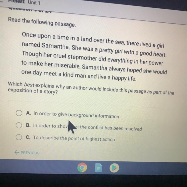 Therefore, the option that best explains why an author would include this passage as part of the exposition of a story is that in order to give background info best explains why an author would include this passage as part of the exposition of a story.