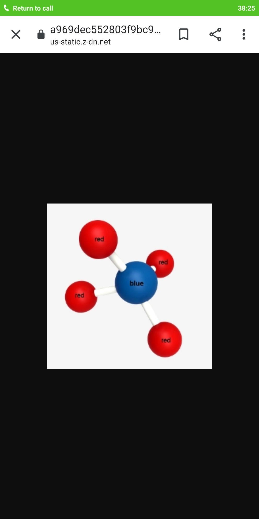 In this picture we can see that there is a central atom which is marked in blue where as the other atoms are peripheral and marked in red. The bonds between the blue atom and red atoms are marked with sticks. So if only one type of atoms are present in the molecule then only one coloured balls will be seen. Then the the colour of the balls will be only one.