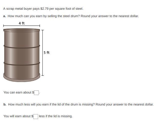 a. To solve this we first need to calculate the surface area of the drum, which has a cylinder shape, therefore it's surface area is given by: