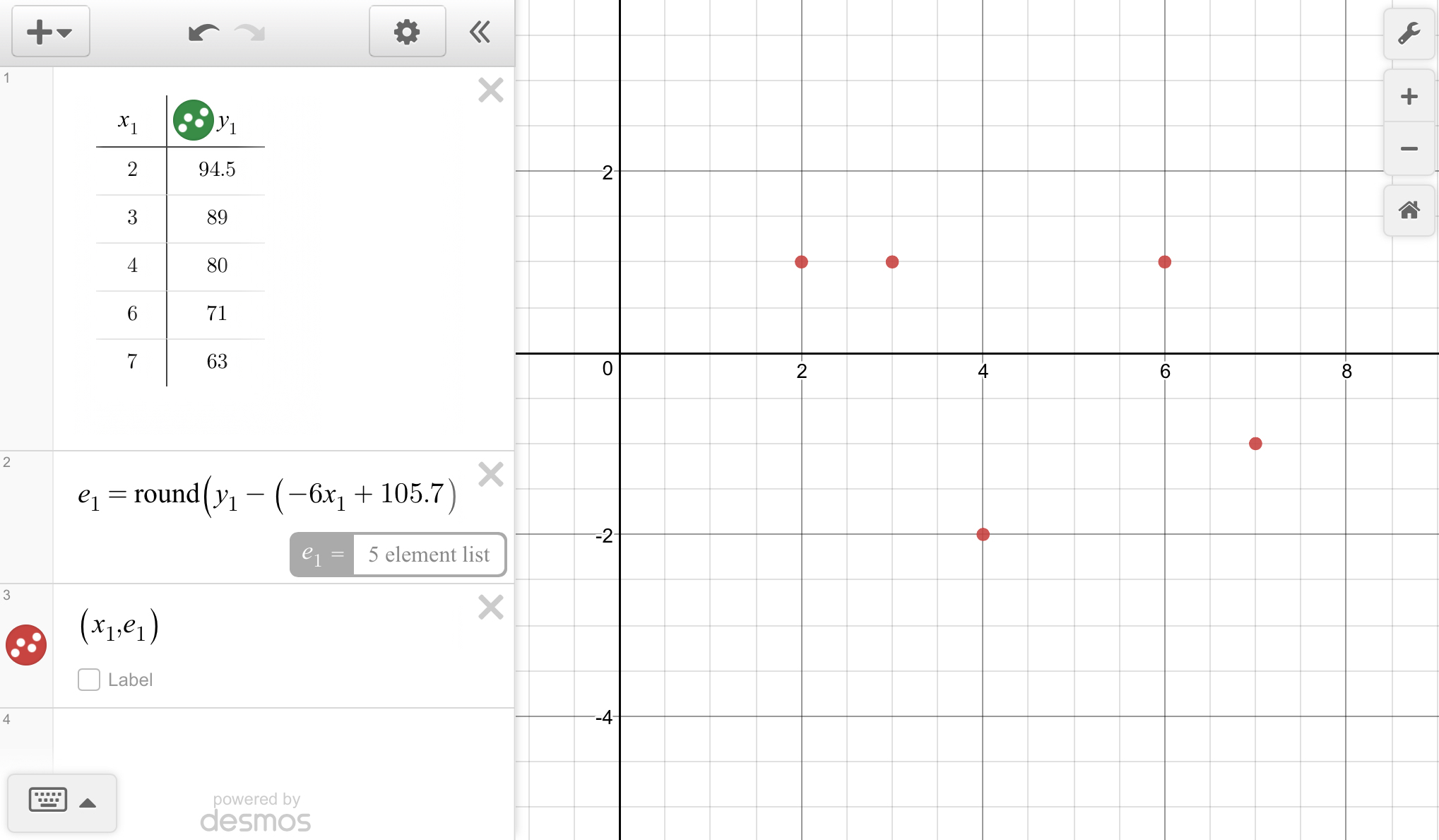 To find : Use the point tool to graph the residual plot for the data set. Round residuals to the nearest unit as needed.