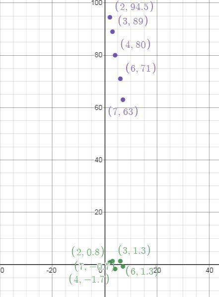 Therefore, The residual points are (2,0.8),(3,1.3),(4,-1.7),(6,1.3),(7,-0.7).