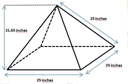 4. The square base of the pyramid measures 25 inches each side .