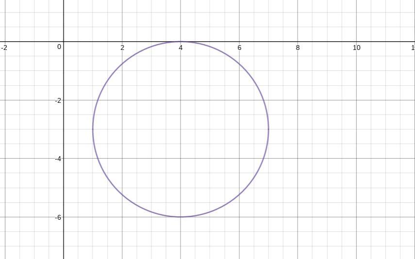 Then, the center is the point (4, -3) and the radius is r = 3.
