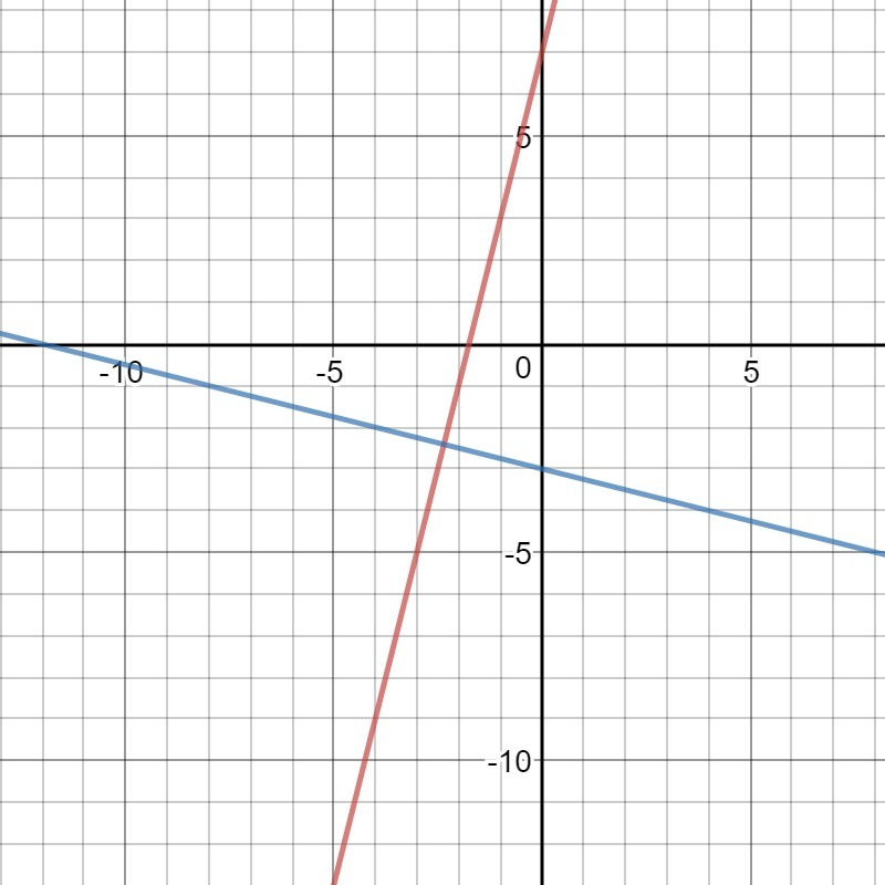 The lines are perpendicular. I used Desmos Graphing Calculate to graph the lines.