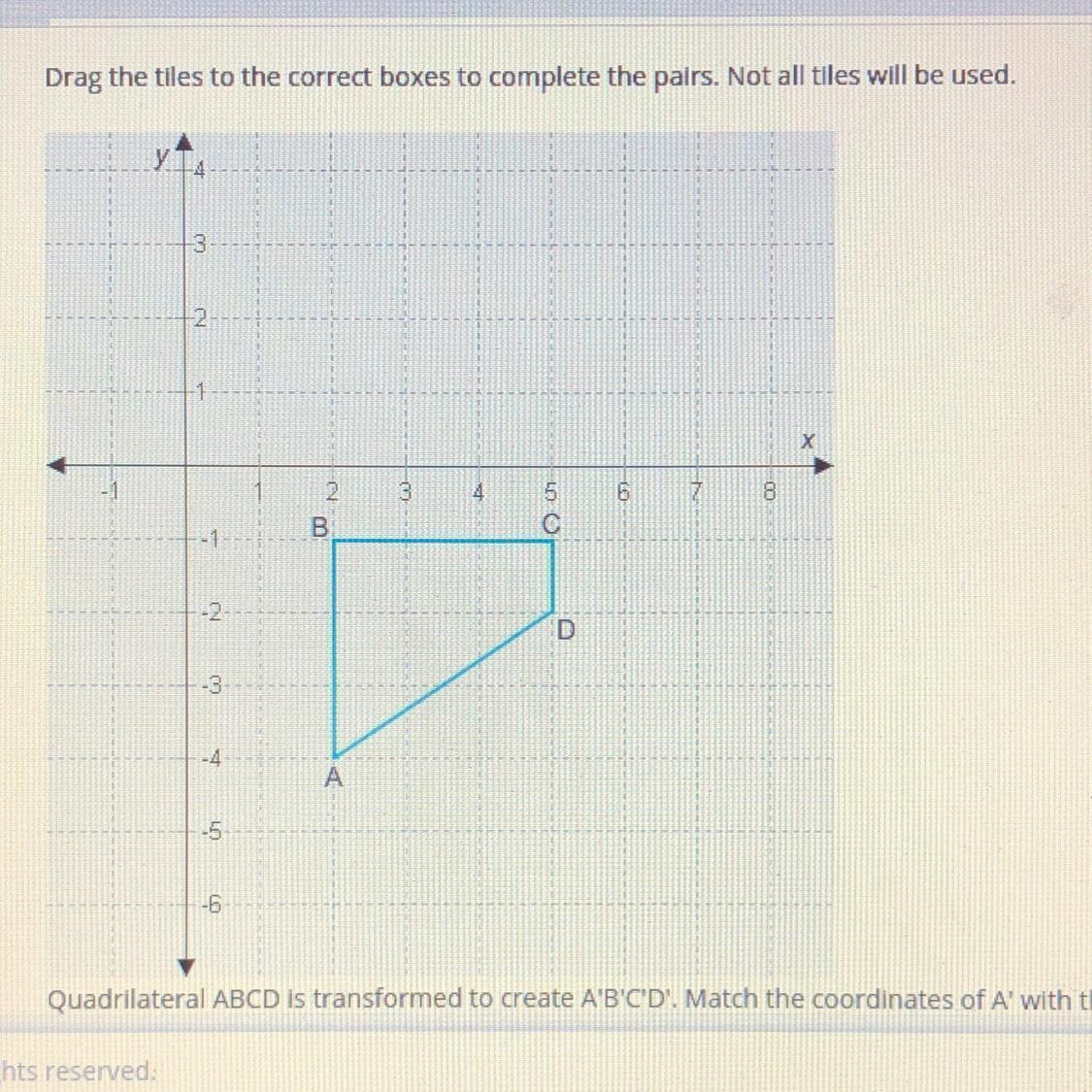 For Quadrilateral ABCD is reflected over the x-axis, the coordinates of A' is at A'(2, 4)