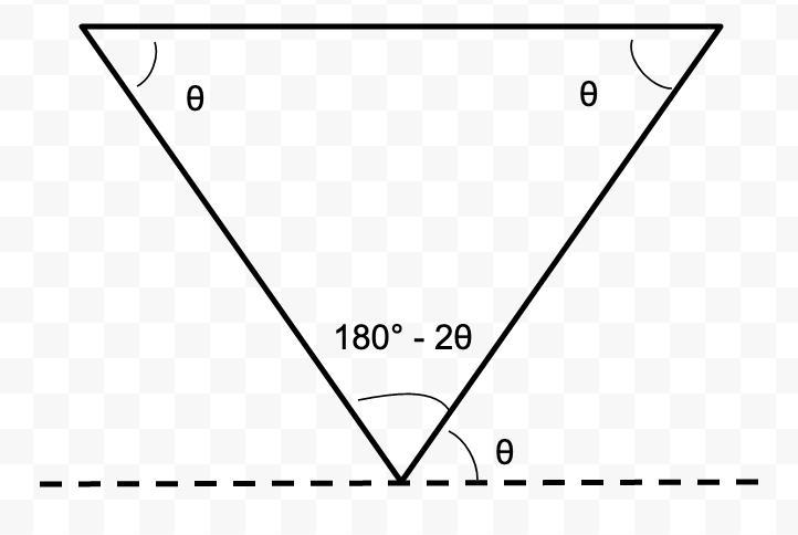 (1 m)² = (0.87 m)² + (0.87 m)² - 2 (0.87 m)² cos(180° - 2θ)