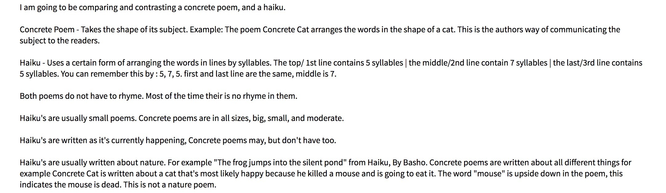 2| What two poems have you chosen? [I chose haiku and concrete]