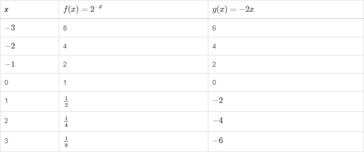 The table shows values for functions f(x) and g(x) .