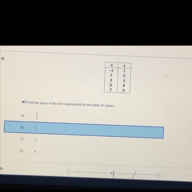 To find the slope of a line, we will use the formula for slope, where m = change in y values/change in x values. This means that we must use two ordered pairs (sets of points) to find the slope. From the table shown above, we can get the ordered pairs (1,2) and (3,3) because they are written in the form (x,y). Now, we can substitute in these values into our formula, as shown below: