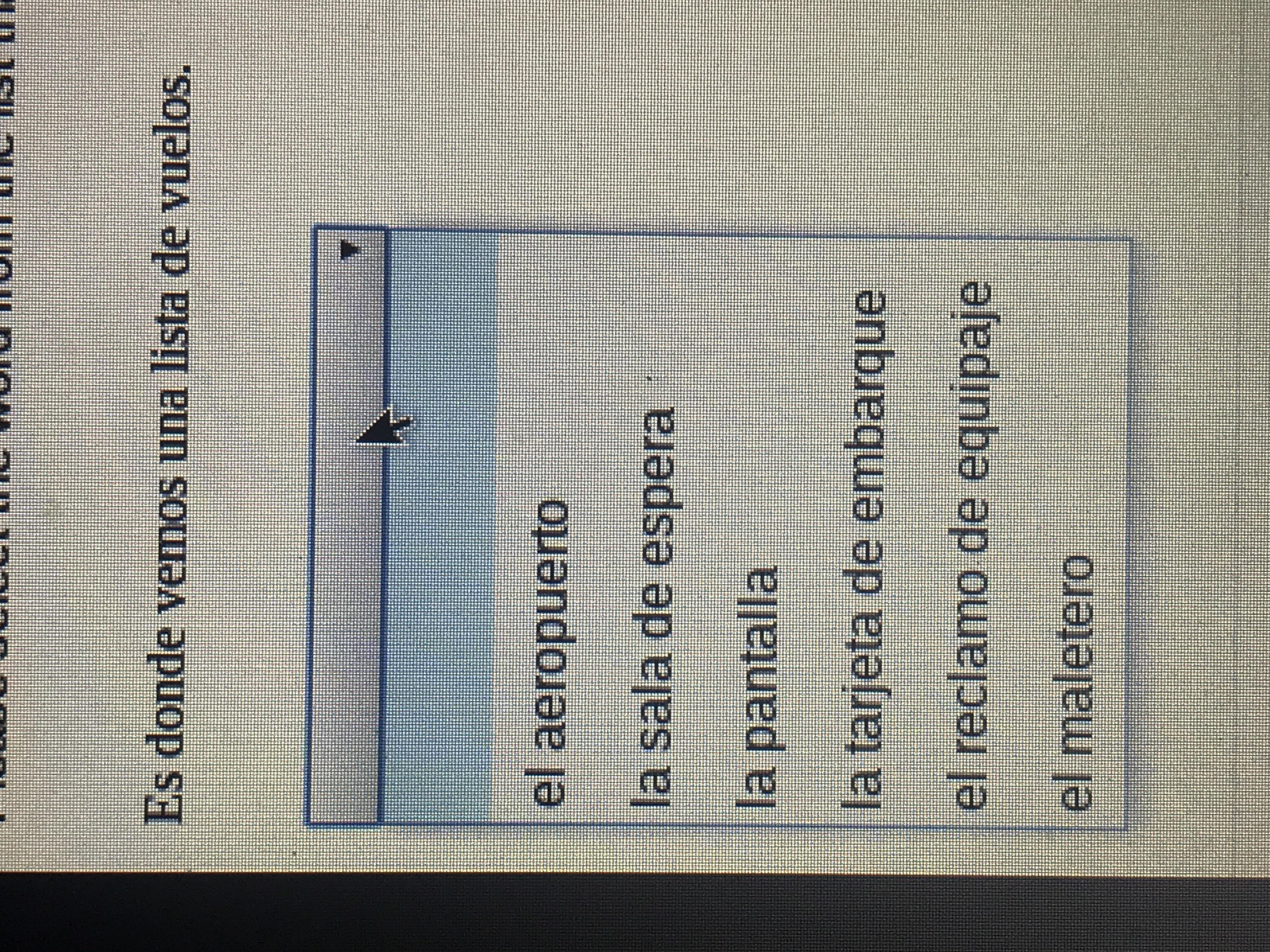 In a airport you look at the screen to check which flights are delayed or cancelled. "The Screen" means "La Pantalla"